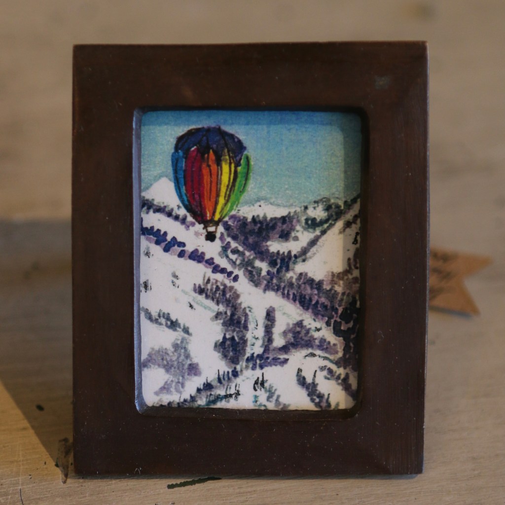 On moving to the Wasatch Mountains, Linda discovered that her apartment building does not allow for a kiln hookup, and so she decided to try her hand at watercolors. She has an affinity for tiny things and thus mini watercolor landscapes. The surrounding mountains are her inspiration.