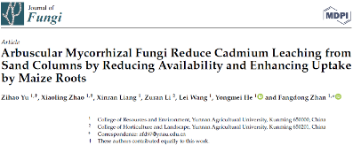 此外,研究组研究了AMF对砂柱-玉米培养系统中Cd迁移行为的影响,发现Cd离子主要吸附在砂粒上,其次为植株Cd累积量和Cd淋溶流失。接种AMF会改变Cd在砂柱-玉米体系中的分配,导致砂粒Cd吸附量增加6.2%,玉米植株Cd累积量增加68.1%,砂粒Cd淋溶流失降低84.6%。且砂粒Cd吸附量与GRSP含量、根系草酸分泌量呈极显著正相关,根系Cd累积量与Cd淋溶流失量呈极显著负相关。表明AMF通过菌根分泌物介导,会增加砂粒Cd吸附与植株Cd累积,减少Cd淋溶流失,在钝化土壤Cd污染、减少Cd流失方面具有重要的潜在生态功能。研究论文“Arbuscular mycorrhizal fungi reduce cadmium leaching from sand columns by reducing availability and enhancing uptake by maize roots”于2022年8月17日发表在Journal of Fungi(JCR一区、IF=5.724)期刊上。