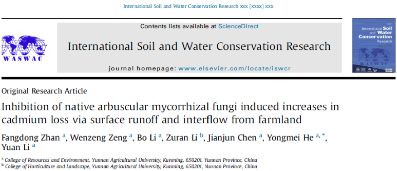 这些结果能间接证明污染农田土著AMF具有减少作物地上部Cd吸收、径流和壤中流Cd流失的生态功能。研究论文“Inhibition of native arbuscular mycorrhizal fungi induced increases in cadmium loss via surface runoff and interflow from farmland” 于2022年7月16日在线发表在International Soil and Water Conservation Research(JCR一区、TOP期刊,IF=7.481),论文“Suppression of arbuscular mycorrhizal fungi increased lead uptake in maize leaves and loss via surface runoff and interflow from polluted farmland”于2022年6月6日发表在Environmental Research(JCR一区、IF=8.431)期刊上。