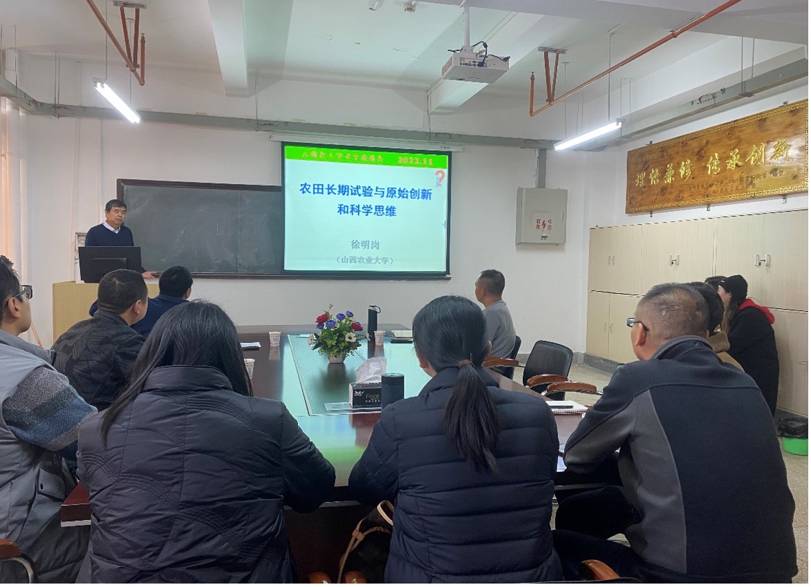 2022年11月22日上午,应美加墨世界杯官方网站邀请,山西农业大学徐明岗教授在化学楼九楼会议室作题为《农田长期试验与原始创新和科学思维》的学术报告。报告会由湛方栋副书记主持,公司老师及在读硕士研究生二、三年级聆听报告。