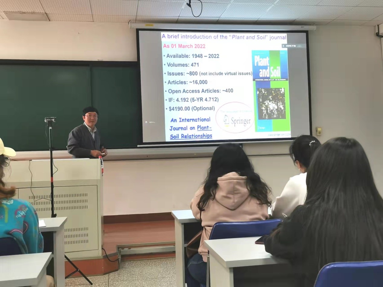 何新华教授首先介绍了土壤领域TOP期刊《Plant and Soil》的背景、概要、编辑部及成员组成,分析了稿件接收数量和接收率等大数据,重点讲解了国际期刊投稿的整个流程,应准备的相关材料。并结合Plant & Soil (Springer Nature) 领域编辑的工作实例,系统介绍了稿件送审、同行专家评审、出版流程、学术规范、拒稿主要原因等内容,提醒了师生投稿时应注意的相关问题。