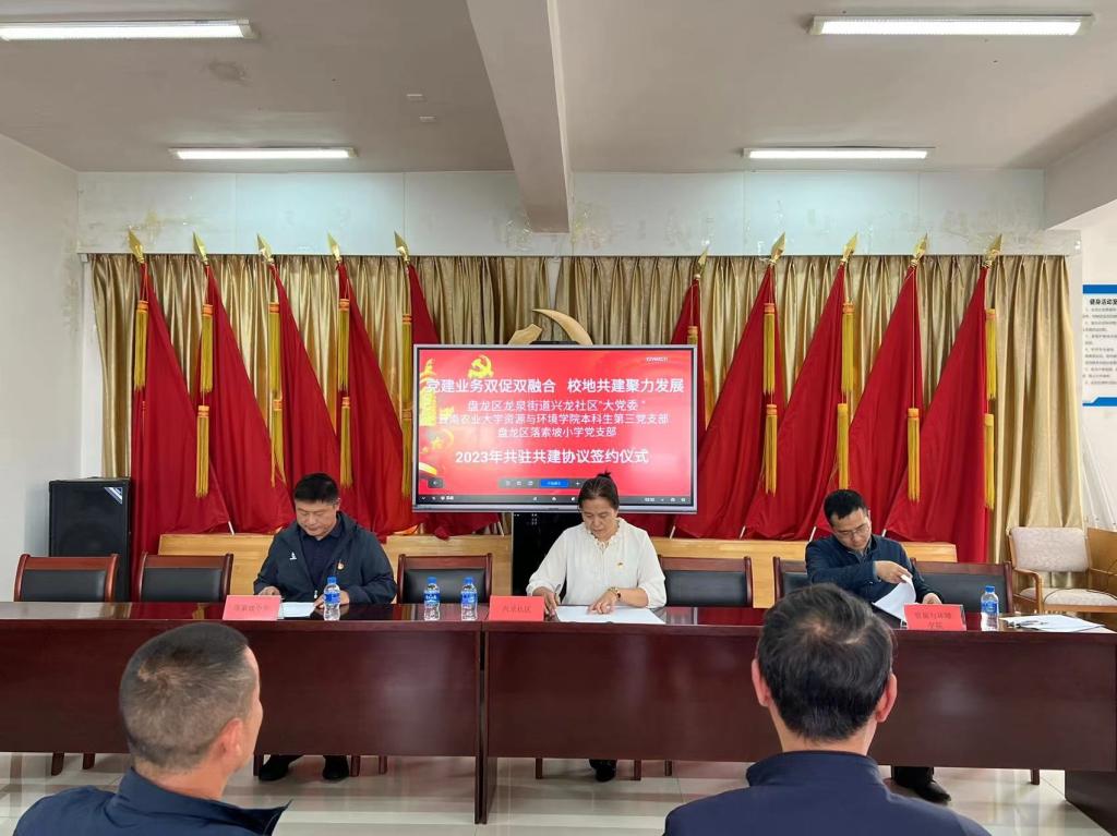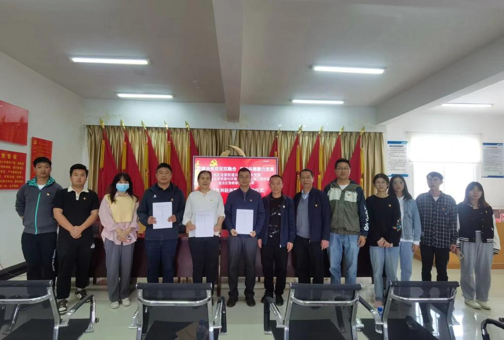 2023年3月27日下午,为深入贯彻落实习近平总书记重要指示精神,全面学习贯彻党的二十大精神,全面落实新时代党的建设总要求,切实提升党建引领基层治理水平,本着“组织共建、资源共享、活动共办、事务共商、人才共育、文化共兴”原则,推动党建业务双融双促,聚力校地共建发展,美加墨世界杯官方网站本科生第三党支部与盘龙区龙泉街道社区“大党委”、盘龙区落索坡小学党支部签订共建协议。公司党委副书记湛方栋、组织员王海宁、支部书记及支委,龙泉街道兴龙社区党委书记吴其华、落索坡小学党支部书记武振华,共同参加签字仪式。