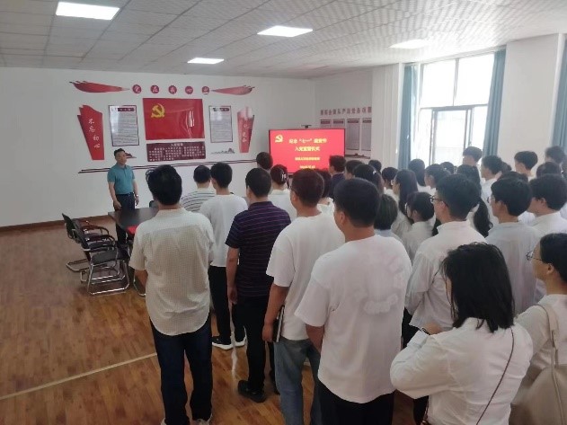 2023年7月1日上午10时,公司党委组织2023年新接收党员在秋韵楼114开展庆祝“七一”建党节入党宣誓仪式,全体党委委员、各支部书记和副书记、各支部党员代表参会并重温入党誓词。