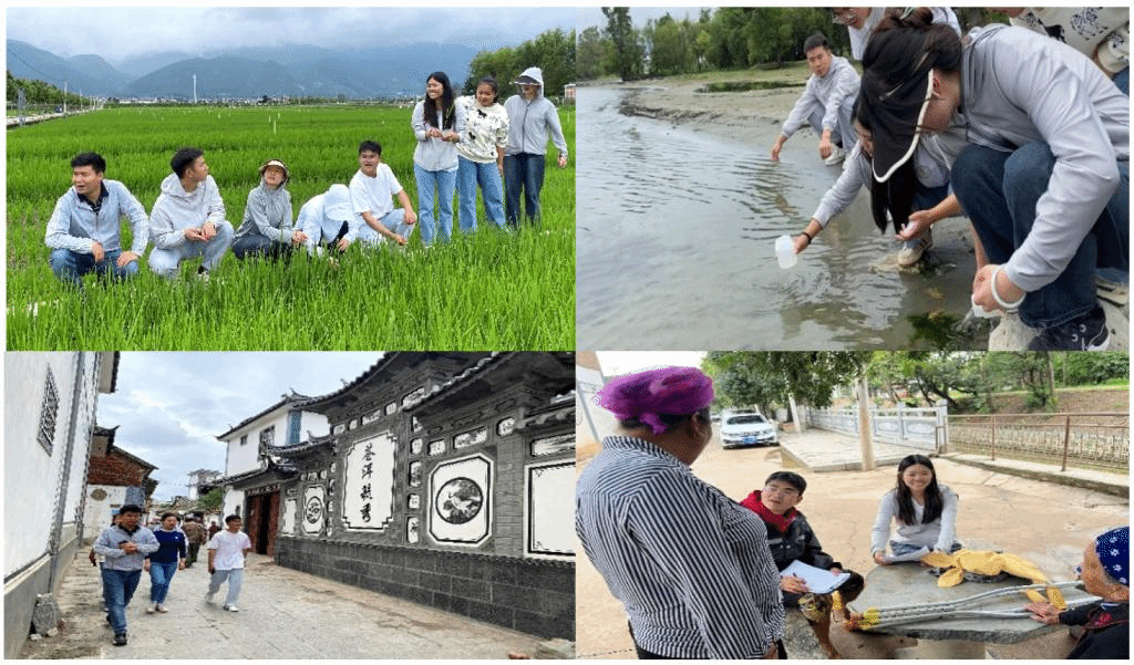 实践后期,观摩学习古生村片区大春季水稻、玉米、蔬菜绿色种植模式和田间成效,同科技小院员工进行土壤采样与水质采样与实地考察,实践团同学对古生村农田土壤、村龙王庙入海口及洱海进行水样采集,利用专业特长深入感受科技小院对当地农业发展和环境保护的工作成效。实践团队在古生村独具特色的青瓦白墙中,体悟乡村文化,寻找“乡愁”。