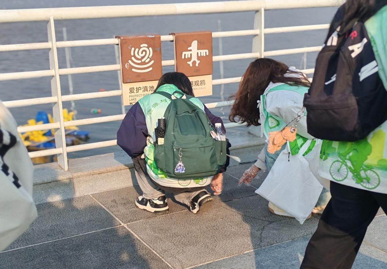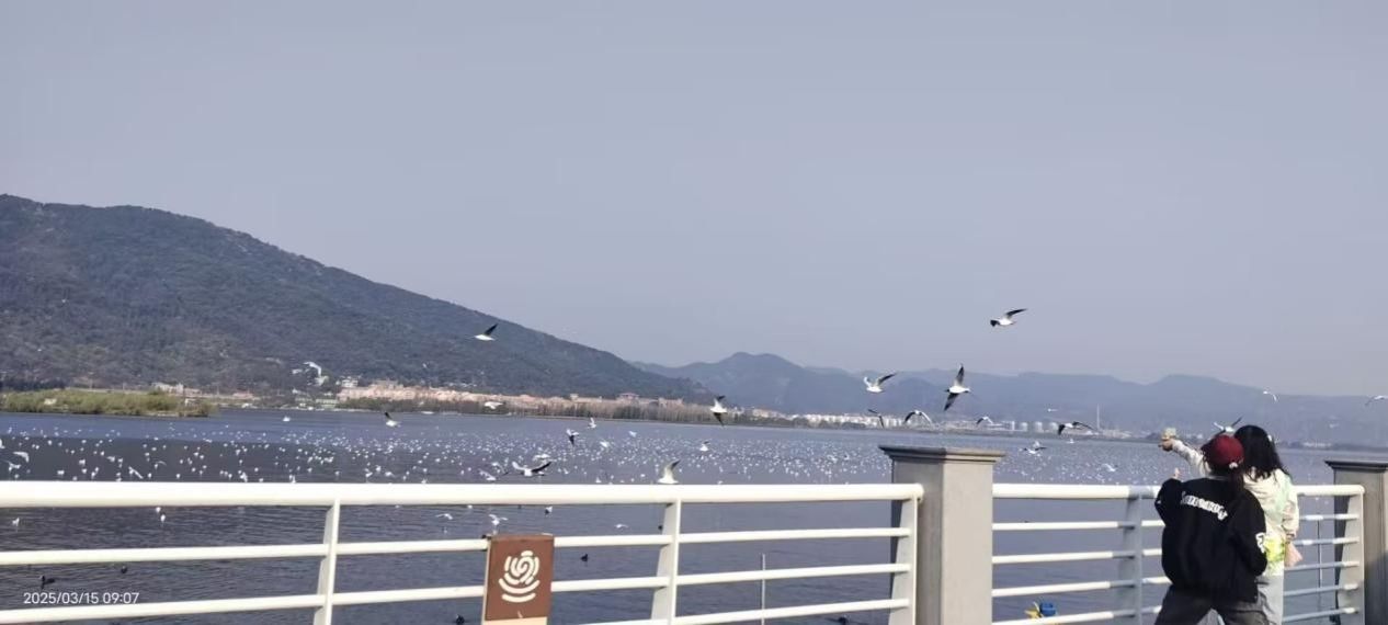 在投喂点与工作人员设置明显的投喂指示牌,安排数名志愿者监督告知游客正确的投喂食物(如鸥粮)和方式,避免投喂有害食物(如面包等可能引起海鸥消化不良的食物),志愿者们还积极开展了环保行动。他们手持垃圾袋和夹子,分组对海埂大坝周边的垃圾进行了清理。无论是散落的塑料瓶、废弃的包装袋,还是隐藏在草丛中的烟头,都被志愿者们一一捡起。他们用实际行动维护滇池生态环境,为红嘴鸥营造一个干净舒适的家园。