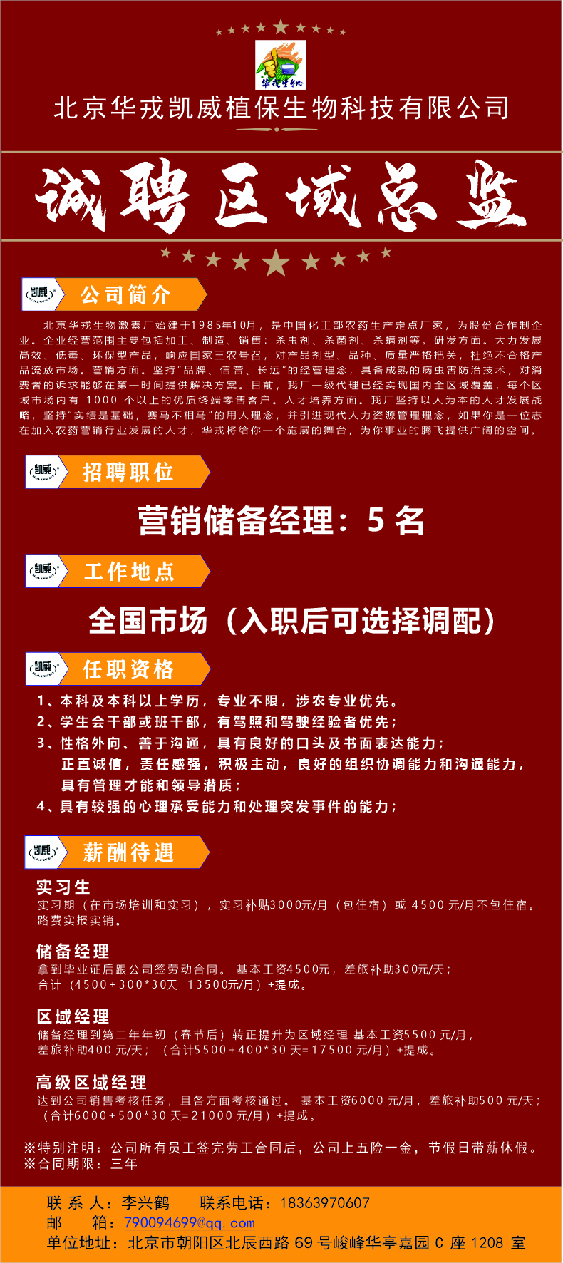 北京华戎凯威植保生物技术有限公司聘区域总监